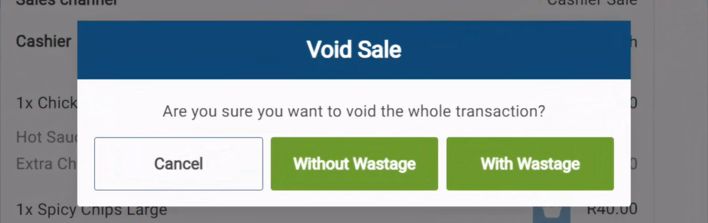 Depending on permissions, a manager’s override may be required. Abandoned sales do not appear in invoices.