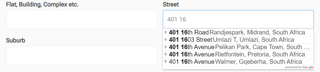 For delivery orders, an address is required. If Google Maps integration is enabled, selecting an address from the dropdown list ensures accurate GPS coordinates, which are needed for distance-based delivery fees. If no integration is available, enter the address manually.
