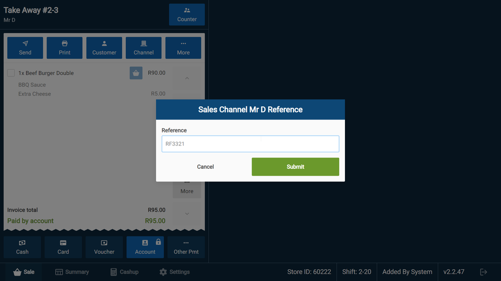 - Counter orders allow sales to be put through without needing any customer details to complete the transaction.