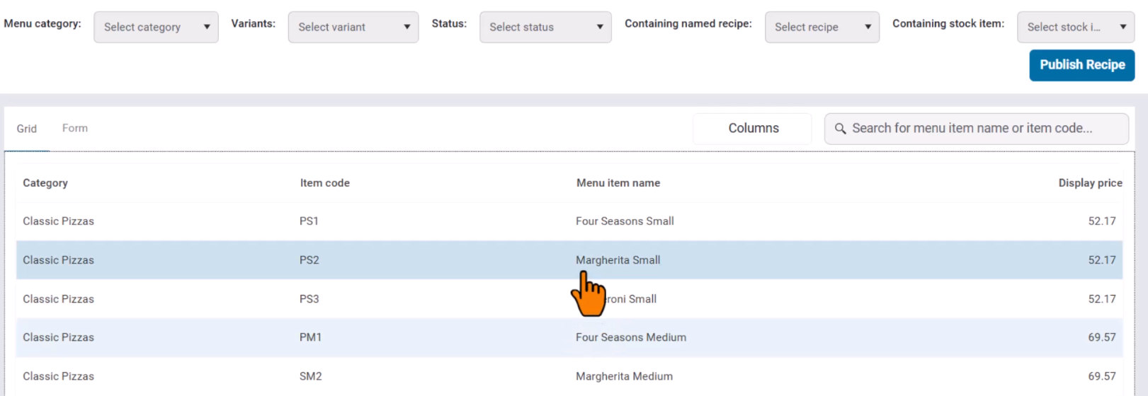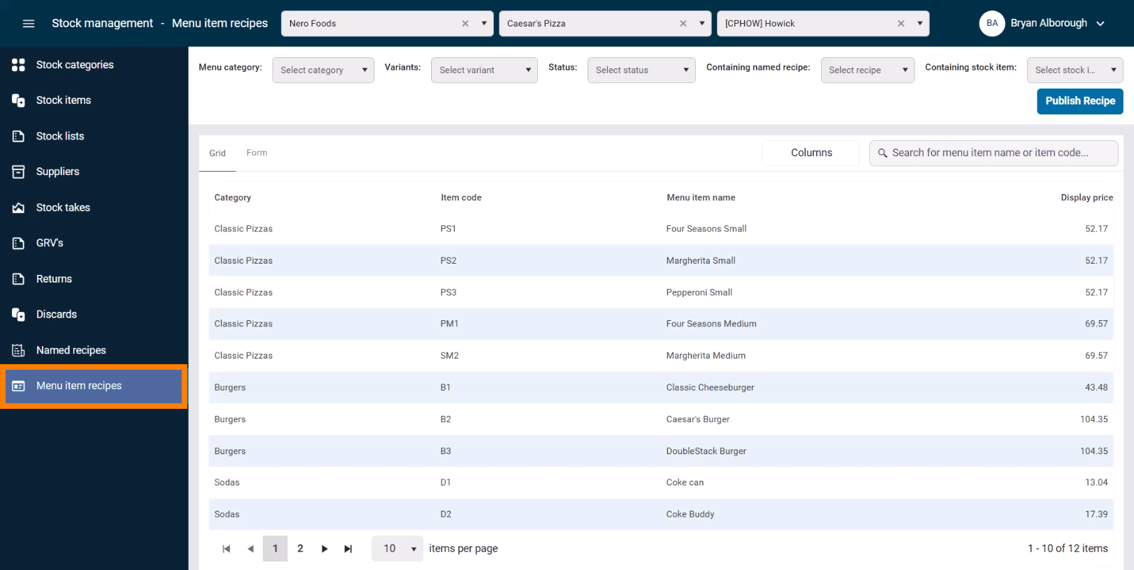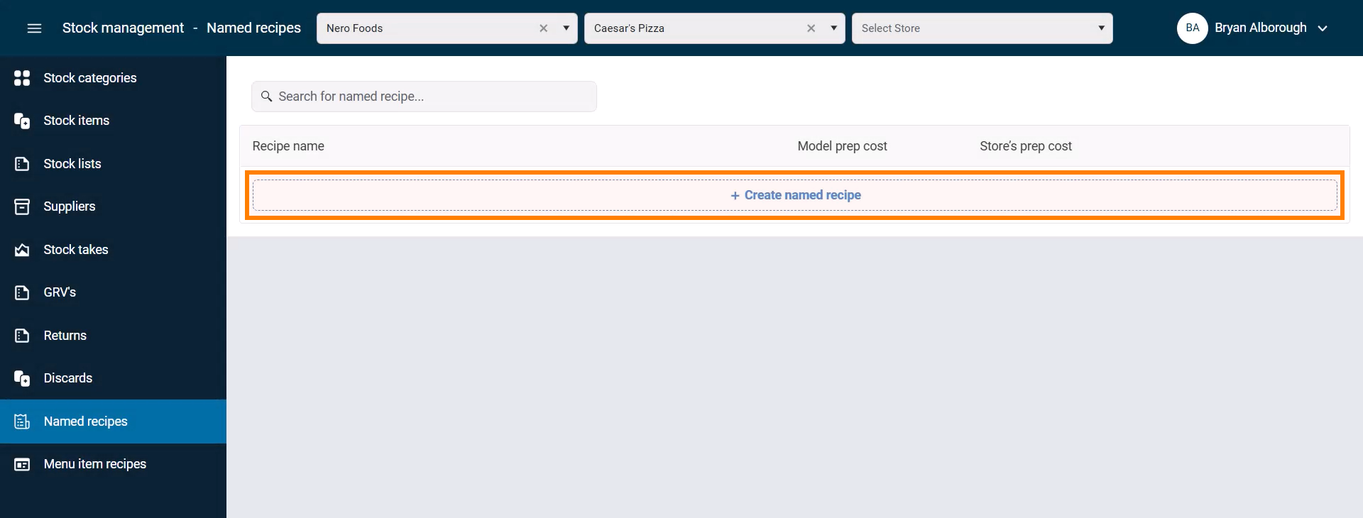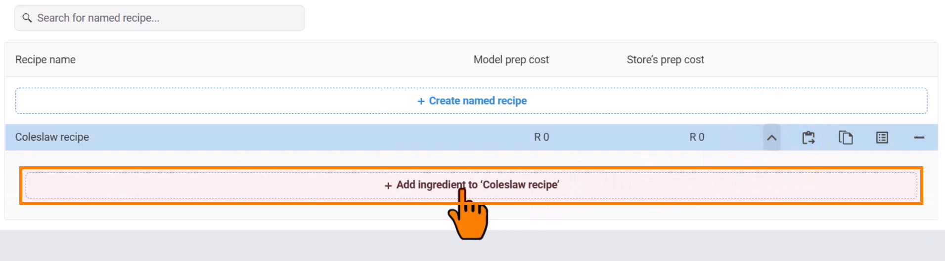 This helps streamline recipe management by creating sub-recipes for frequently used components—such as pizza bases or chip packets that always include chip forks and salt sachets. Named recipes can also be used for stock items that are prepared in-store and need to be tracked, like coleslaw or pre-mixed sauces.