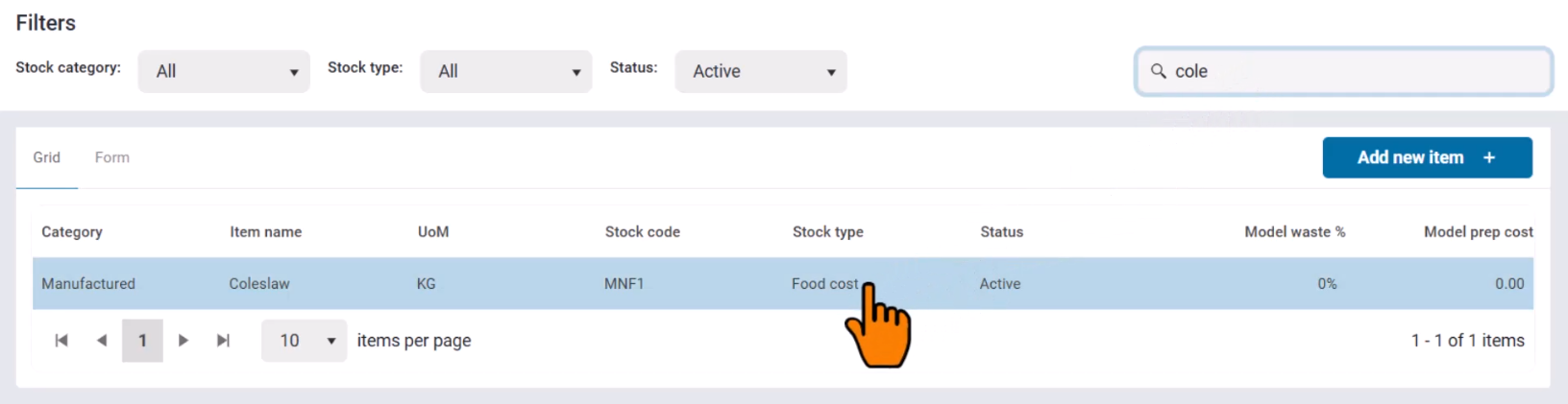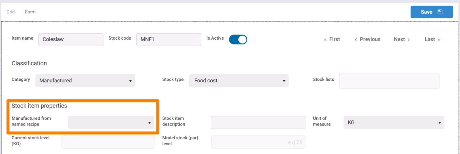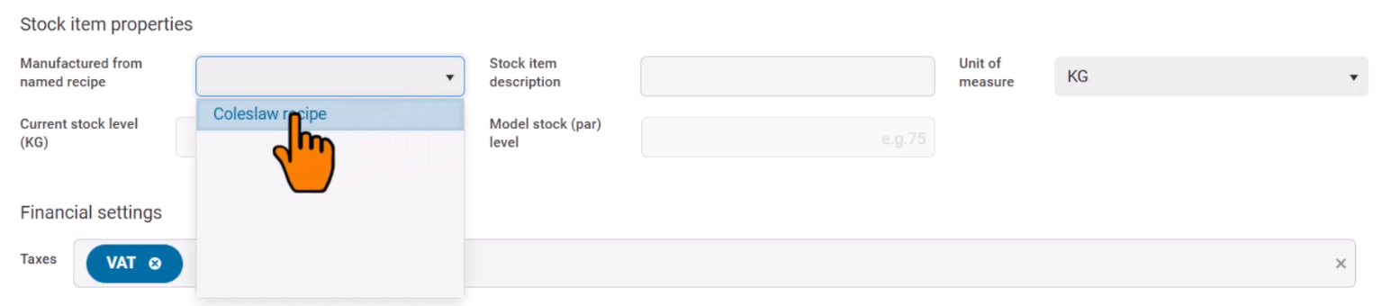Now, the stock item is linked to the recipe and can be tracked accordingly.