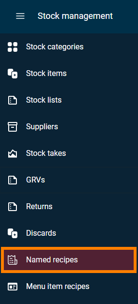 Go to the Named Recipes page. (Menu > Stock management > Named recipes).