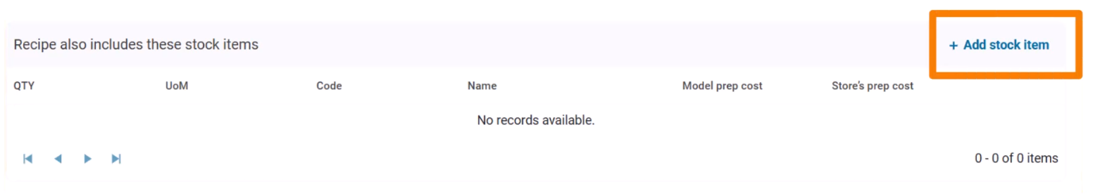 For stock item ingredients not included in a Named Recipe, add them individually: