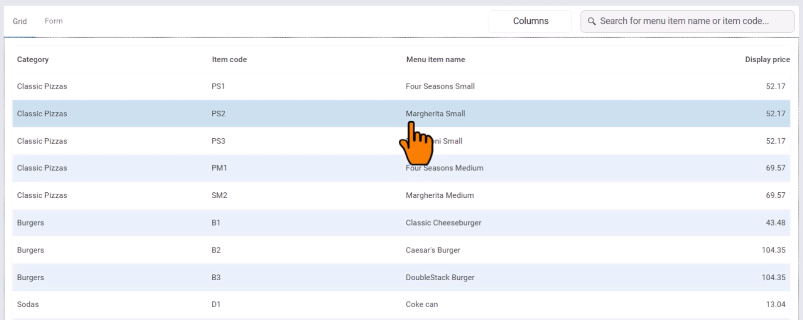 For this example, we’ll add a recipe to a Classic Margherita Pizza.