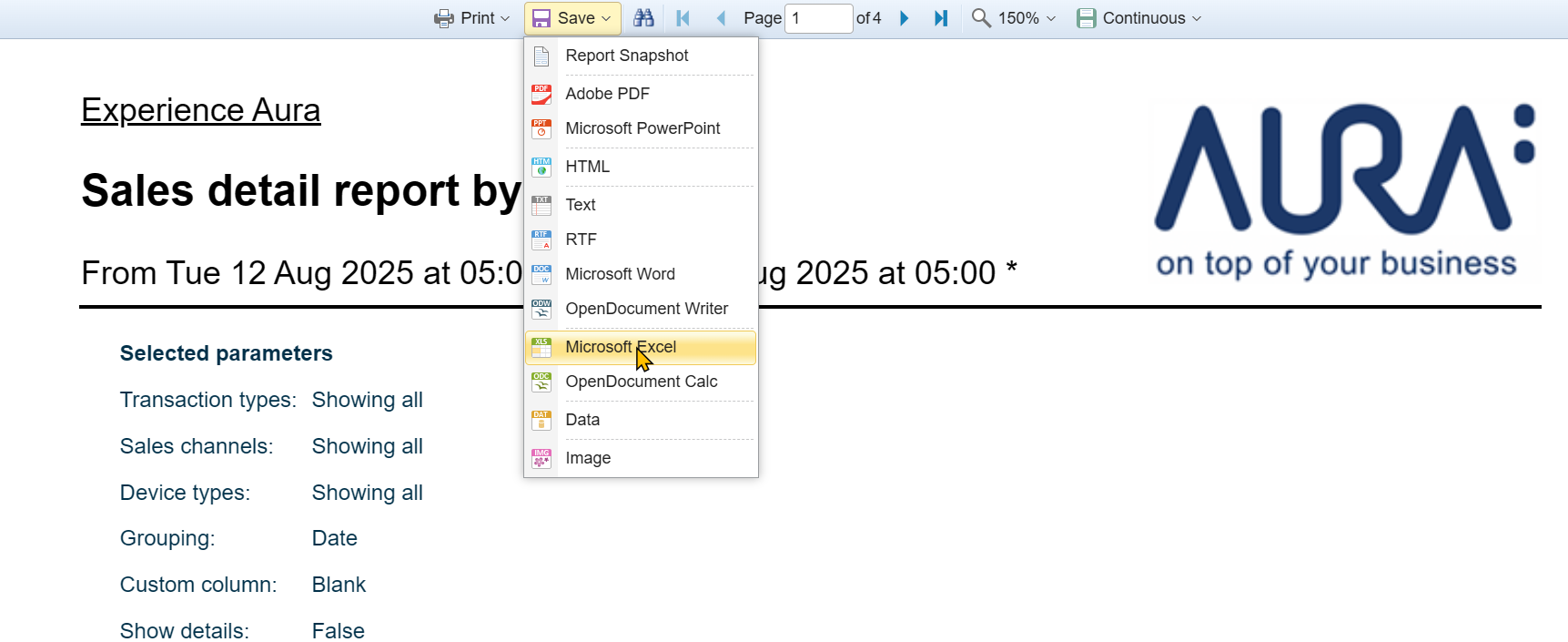 - Microsoft Excel – Exports the report to a spreadsheet for data analysis.