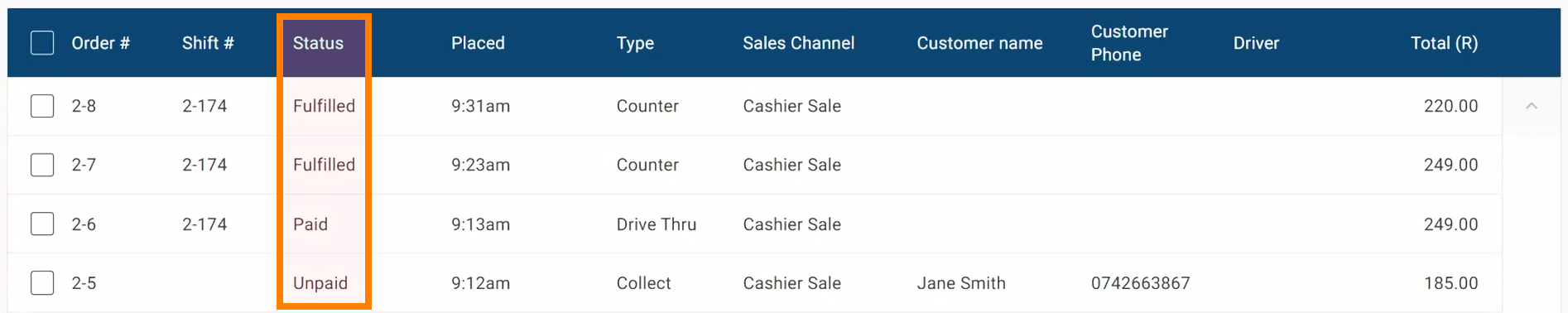 Counter orders are automatically fulfilled, but as a delivery or collect order may be paid in advance, an order needs to be marked as fulfilled in order to indicate that the food has been given to the customer. Drive thru or Lounge orders can also be made to be paid later - so you will need to check that they are all paid.