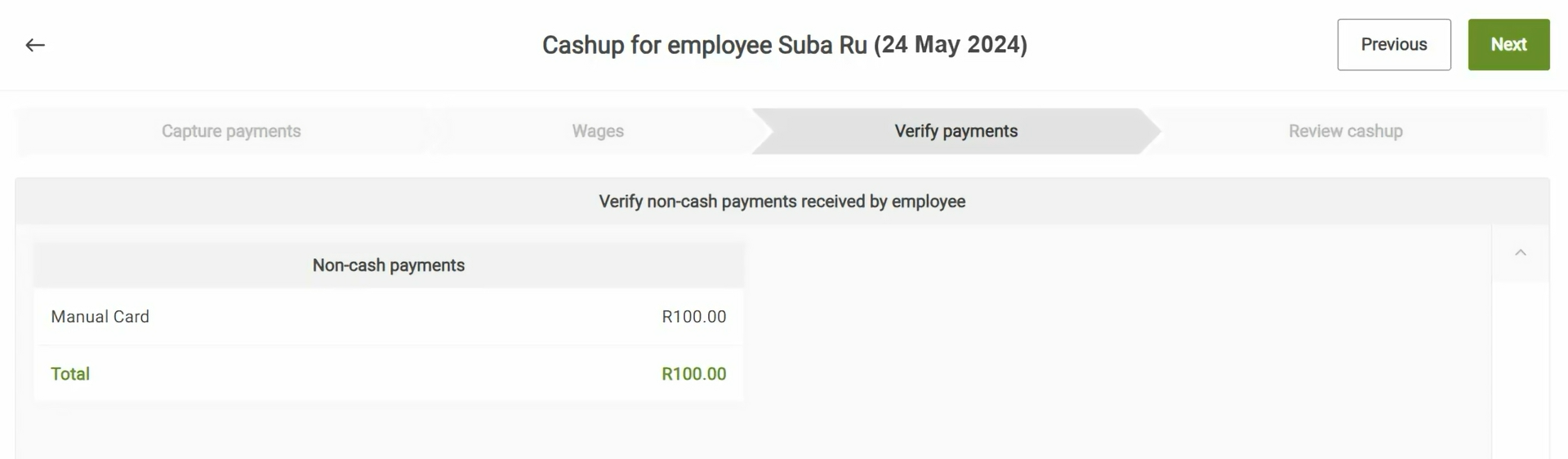 Review all non-cash payments (card, voucher, or online payments) captured in the Capture Payments step.
