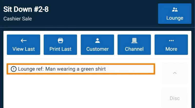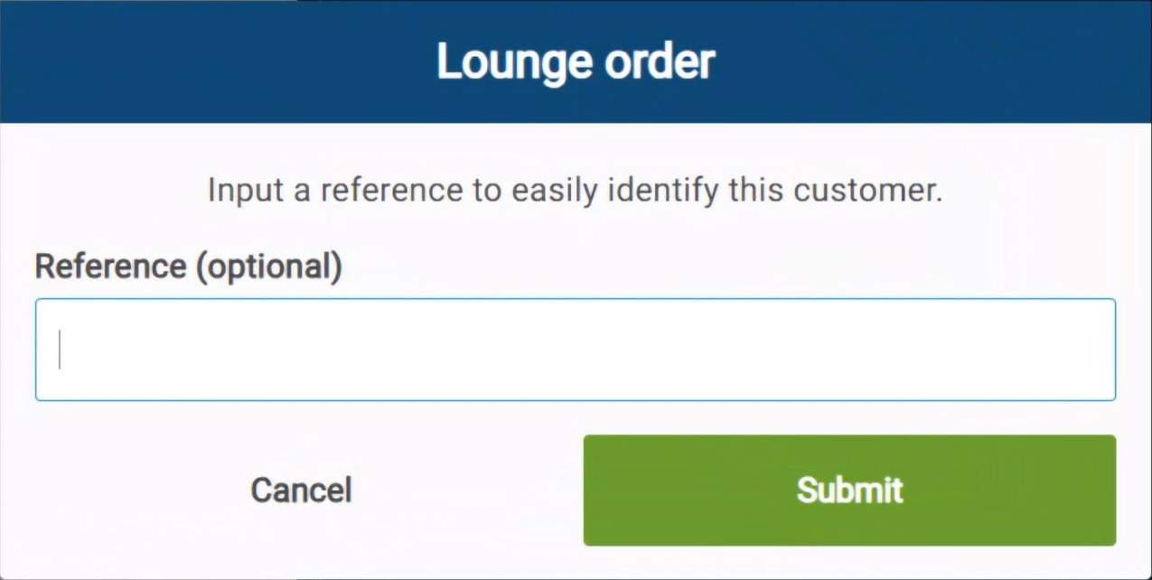 You’ll be prompted to enter a reference, such as a customer’s name or a unique identifier. While optional, this helps keep track of lounge orders.