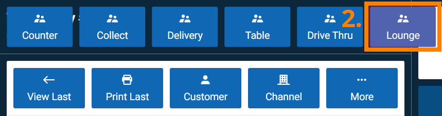 To start, select the "Lounge" transaction type from the order type selector on the Sale screen.