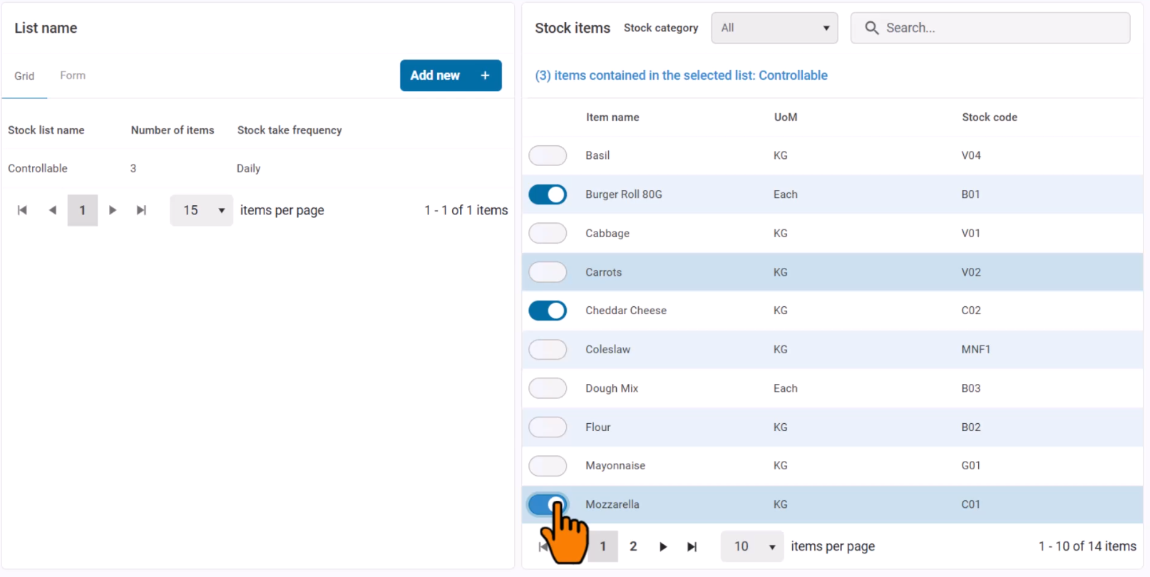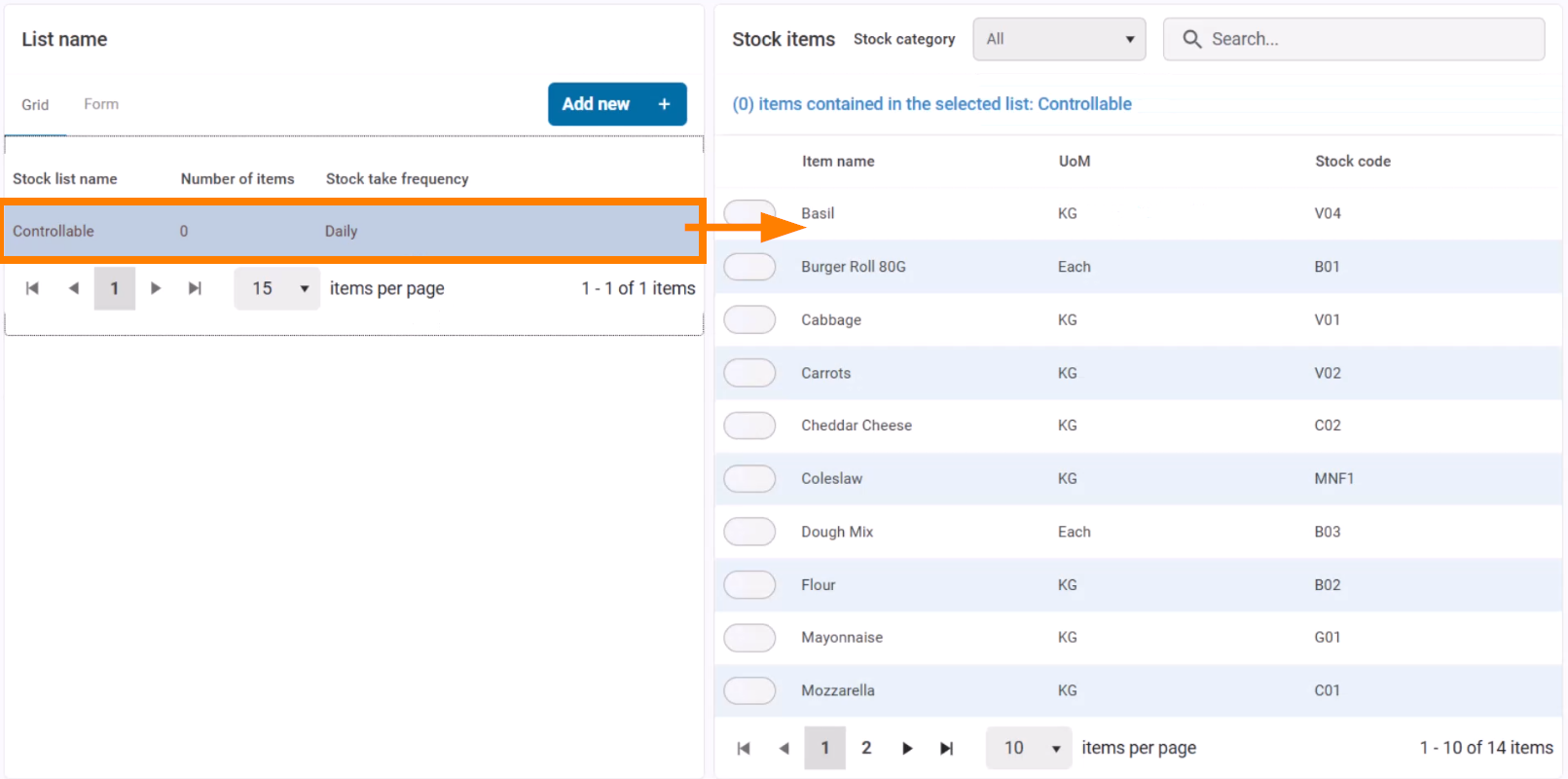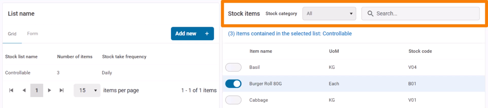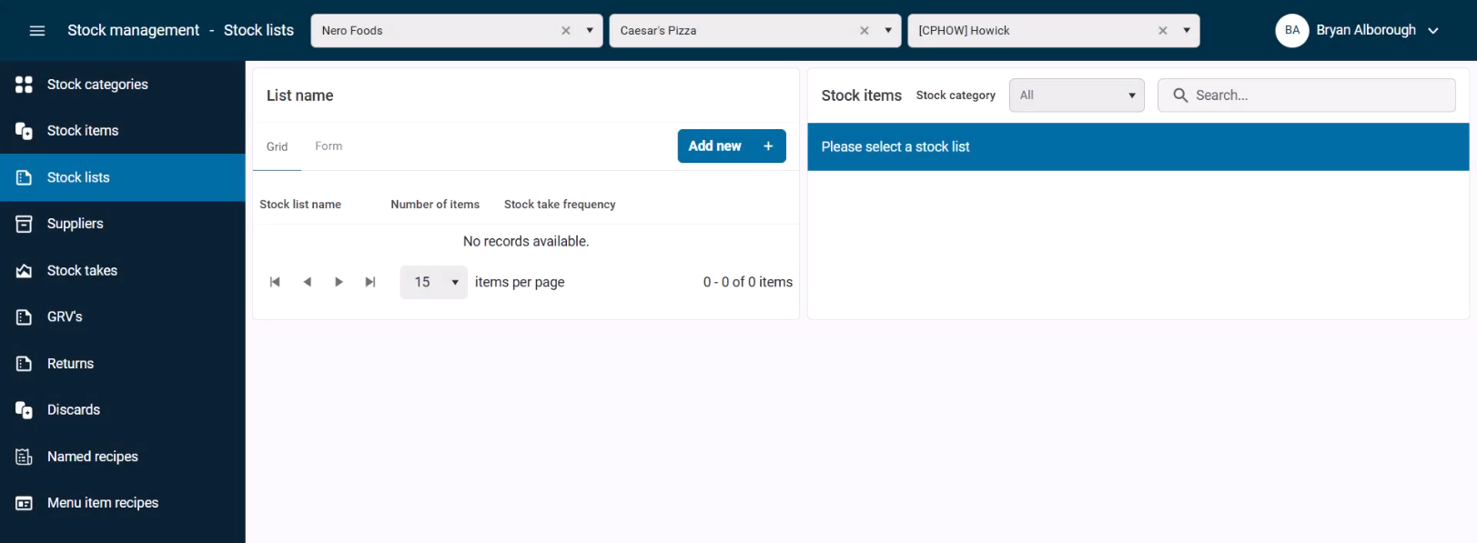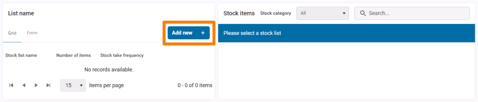 The Stock Lists page helps organize stock items into different lists to improve your stock-taking flexibility.