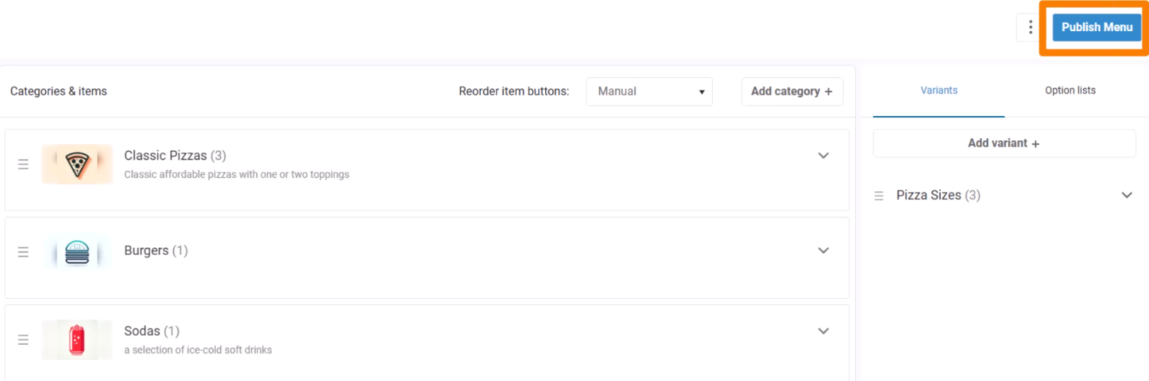 Once you have set up your menu, publishing will apply your changes and make the menu available on your CounterPOS devices
