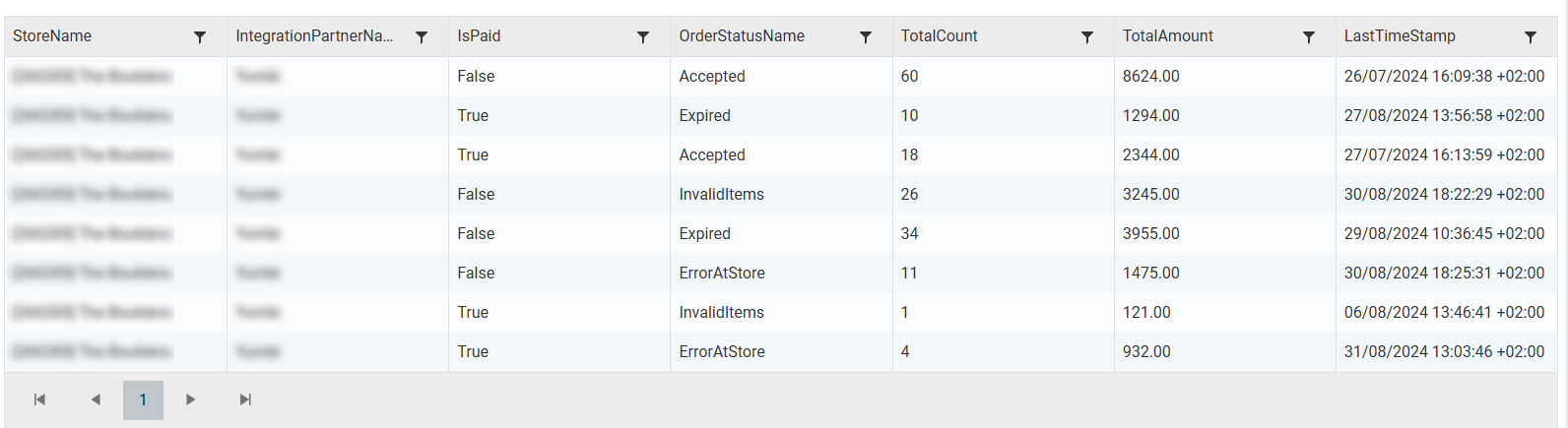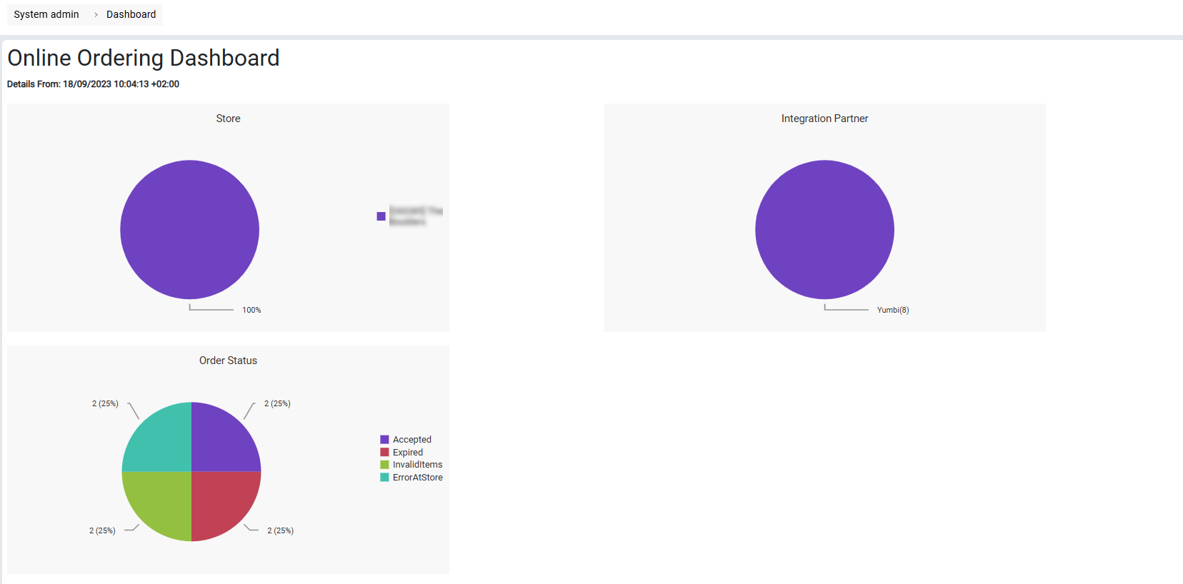- Integration Partner shows the ratio of orders by the online platform that is sending orders to the POS.