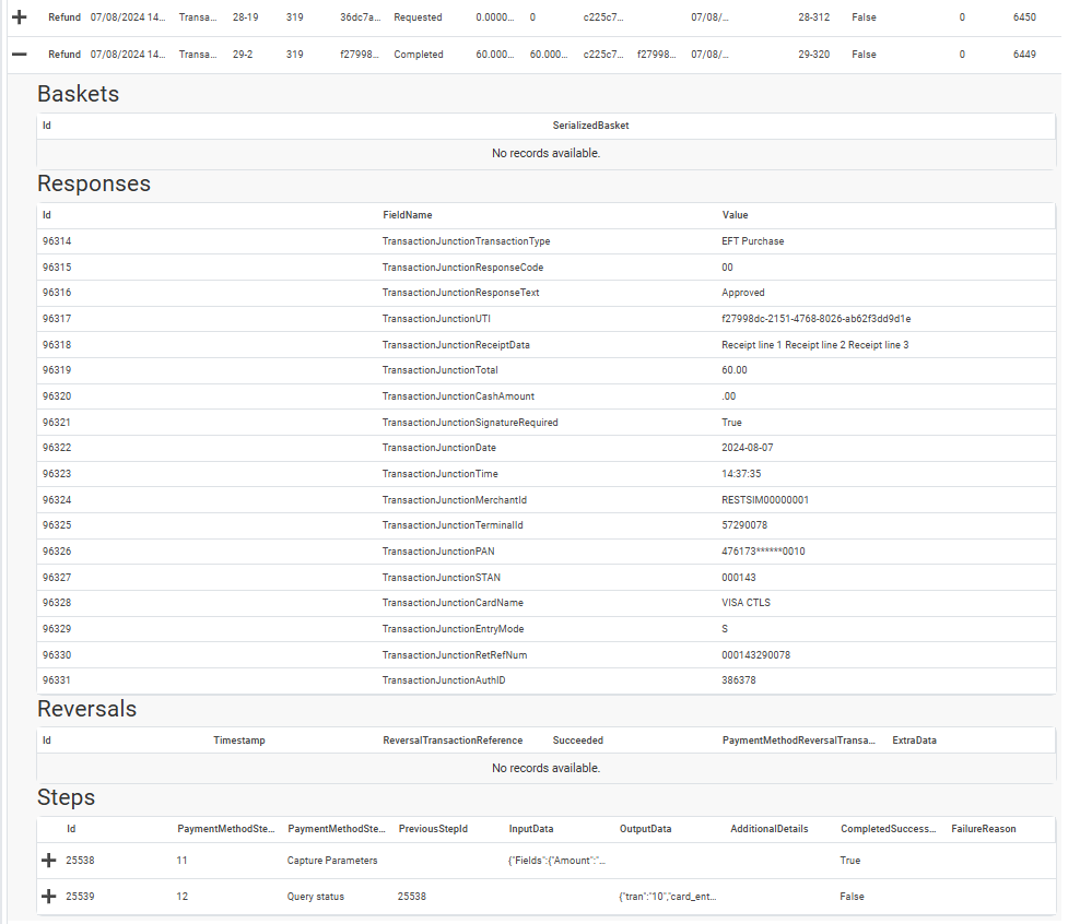- Baskets - If a payment method requires basket information (i.e the items included in the sale) the details of the basket will reflect here.