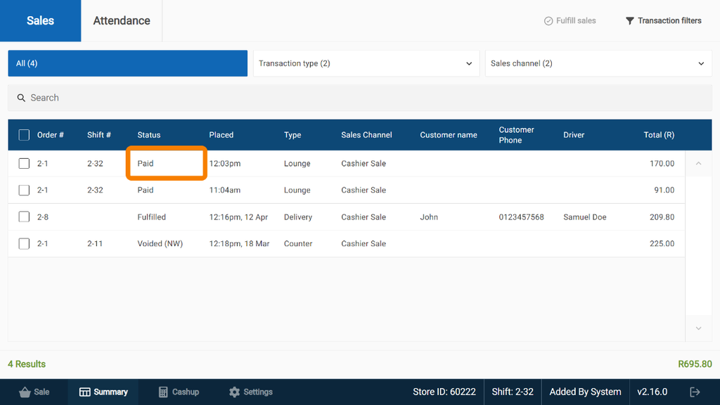 Once the customer has completed the payment process on their phone, the order will automatically update to Paid.